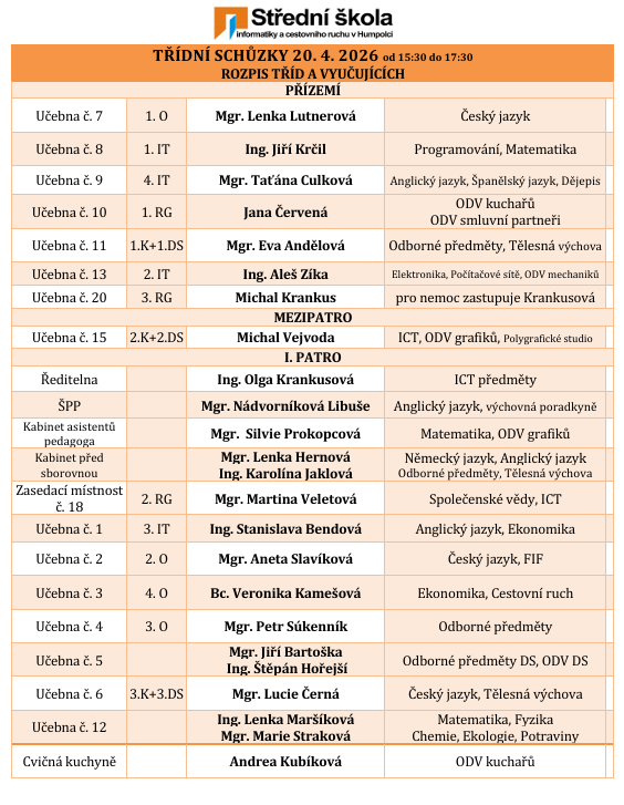 TŘÍDNÍ SCHŮZKY pro rodiče pondělí 20.4.